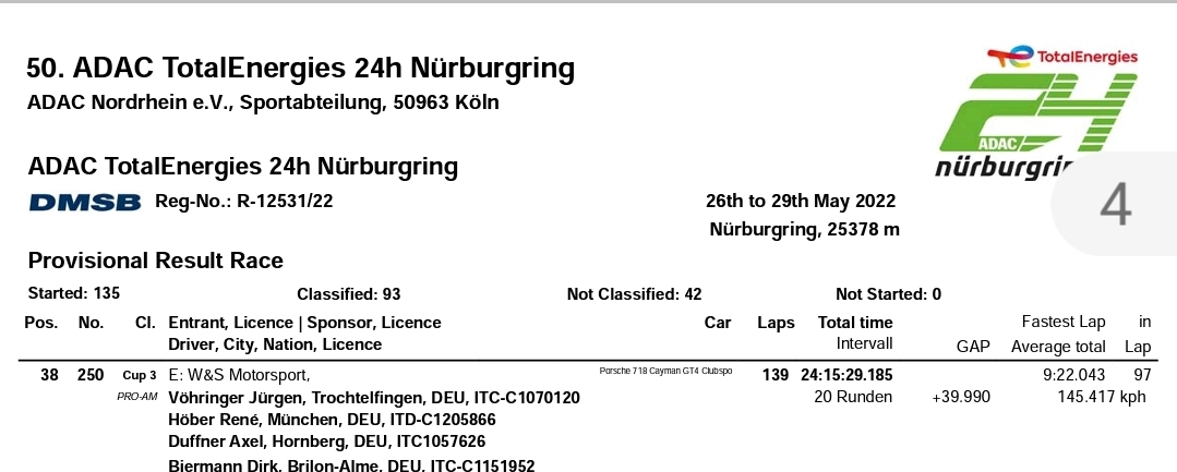 Verdammt, hätte ich das gewusst, hätte ich mal auf die #250 geachtet. Habe ca. 10h am Fernseher und Notebook mit Livestream verbracht. Klasse Leistung! Ich dachte immer Rundstrecke fahren ist für einen Slalomfahrer ein Klacks. Denkste! Trackdays auf Focus RS und SimRacing haben mich definitiv eines besseren belehrt. Rundstrecke ist echt eine Herausforderung.