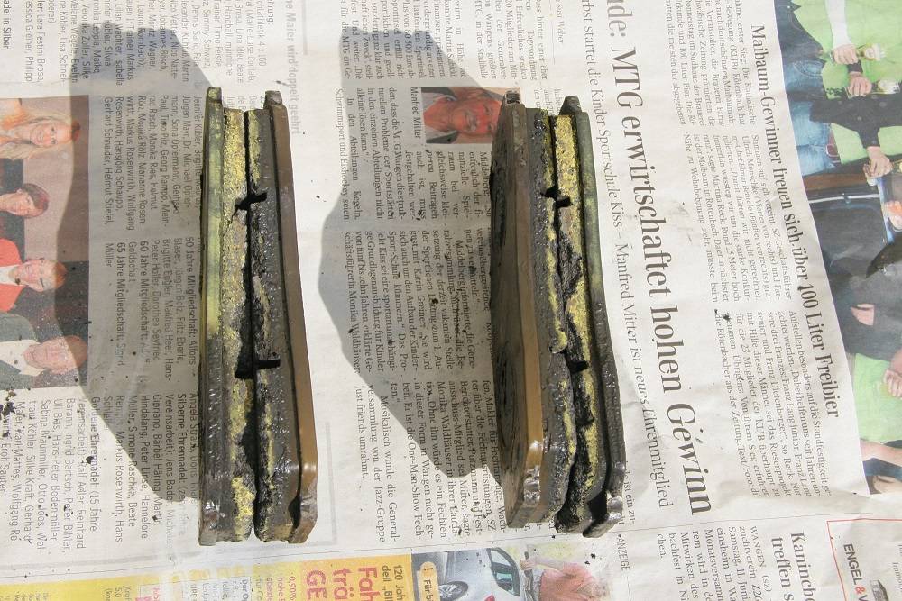 Der Techniker erklärte mir, dass ich wohl die Bremsklötze falsch eingefahren habe und die aus diesem Grund die hohe thermische Belastung nicht verkrafteten. Es gäbe die Vorschrift, neue Klötze 500 bis 700 km einzufahren.
